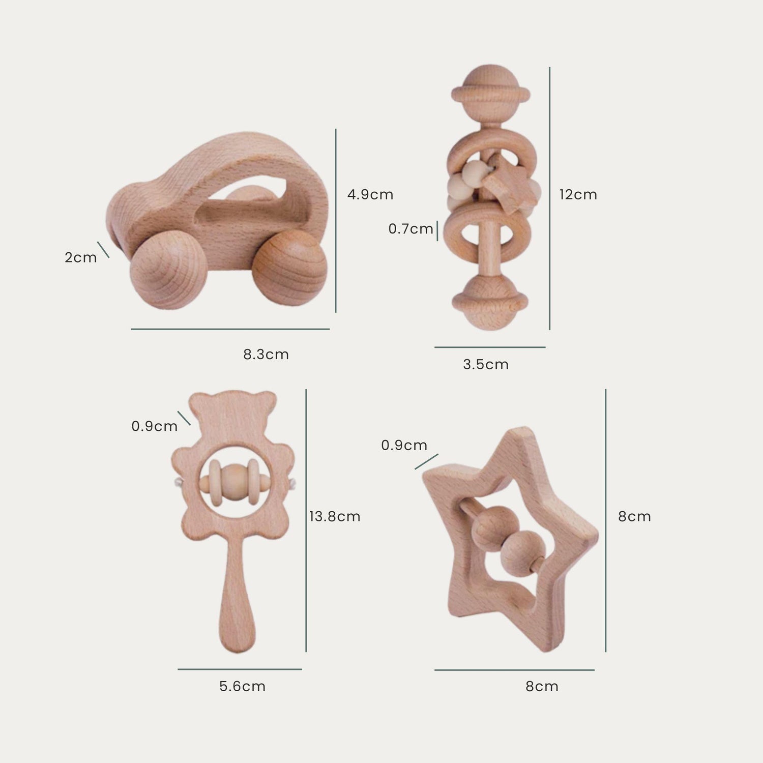 Each rattle is thoughtfully designed to spark wonder through sound and touch, supporting early sensory exploration and fine motor skills while building confidence in playful discovery.