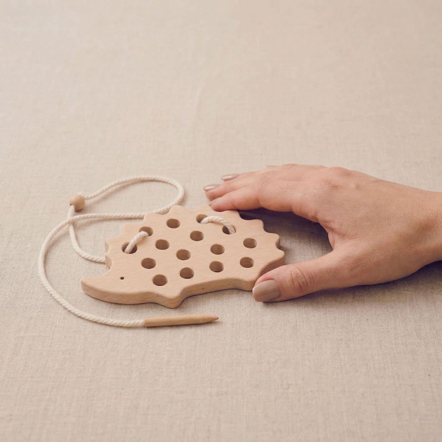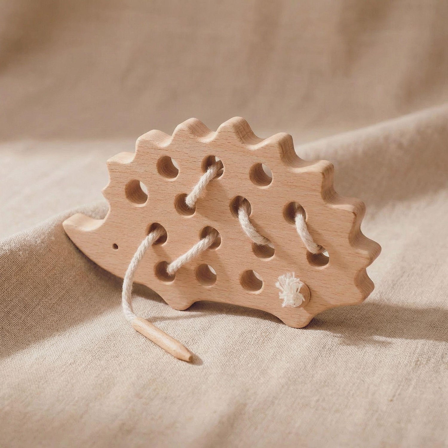 Solid wood piece with cotton threading lace.